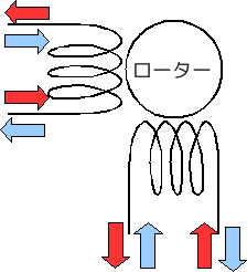 ステッピングモーターにはユニポーラ型とバイポーラ型があって、ユニポーラ型は外部回路が簡単だけれど大きいし重たい。そのため、最近ではバイポーラタイプが主流。 そのせいでユニポーラ型があぶれているのか秋月電子などで安く手に入る。 ユニポーラ型は下の図のように電流を流すコイルを切り替えて正転、逆転を切り替える。このため外部にON-OFFできるスイッチがあればできる。 バイポーラ型は1つのコイルに流す電流の向きを替えて正転、逆転を切り替えるため外部にはHブリッジ回路が必要。 上のようにユニポーラ型は片方のコイルに電流を流している時にもう片方のコイルは何もしていないのでその分重量的に無駄が多い。バイポーラ型は1つのコイルだけなので無駄が少ない。