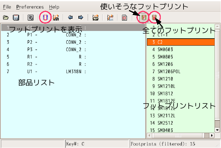 右側のリストからフットプリントを選ぶ。ダブルクリックでOK