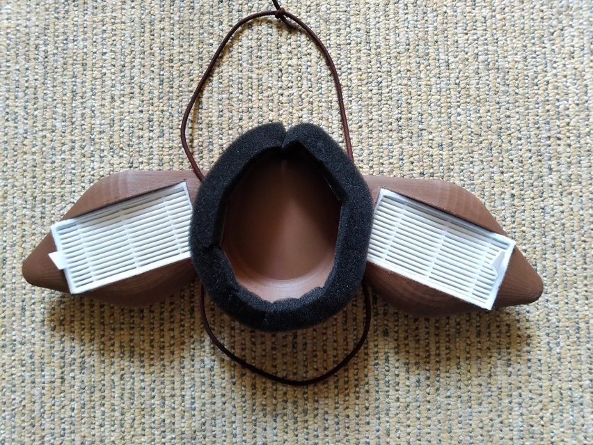 と似ている そして、飛沫が直接フィルタにかからないように、後方吸気にしようとしていろいろデザインを考えていたらナウシカのマスクっぽくなったので、どうせなら寄せてしまおうかと思って作った フィルタはロボット掃除機用のHEPAフィルター よりナウシカ風にすると 暑苦しくて実用的でないのでゴム紐を使ったほうがいい(そもそも見た目が実用的でないけど) OpenSCADでデザインして3Dプリンターで印刷した。印刷に12時間ぐらいかかってしまった! フィルタの前にプレフィルタを入れればより良いかもしれない。 もう少し小さいバージョンを設計したけど、まだ作製していない 版権などに引っかかりそうなので、CADデータは公表しないと思う 広告 |