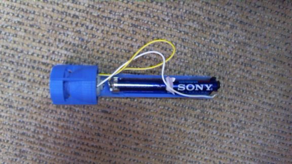 なんとか入れ込んで水に浮かべてみた。防水はほとんどしていない。スイッチもないから動かした状態でペットボトルに入れる